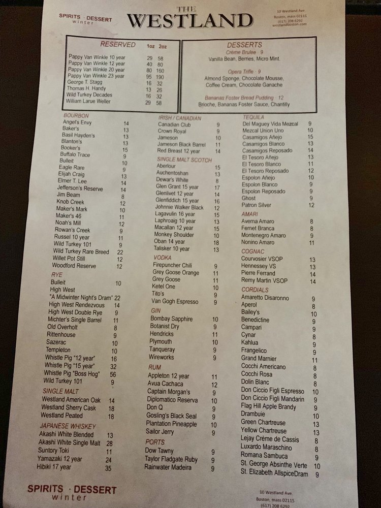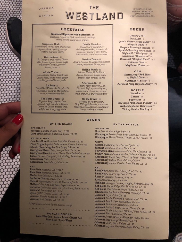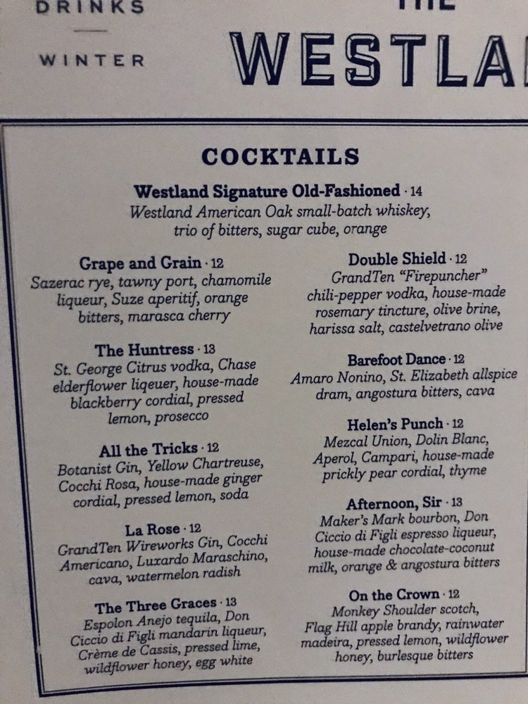 The Westland Menu